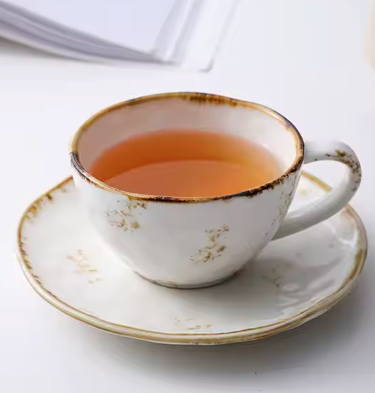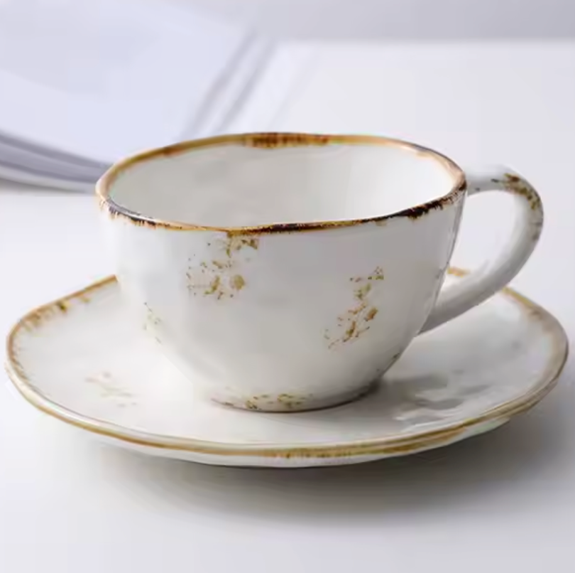 Popular Nordic Style 200ml Hand-Painted Ceramic Tea Cups and Saucers Modern Vintage Design with Brown Rim for Hotel
